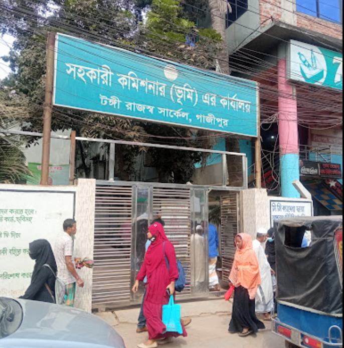 সহকারী কমিশনার (ভূমি) এর কার্যালয়, টঙ্গী রাজস্ব সার্কেল অফিসের ঠিকানাঃ জয়দেবপুর রেলওয়ে ক্রসিং এর নিকট সুরমা হোটেল সংলগ্ন, জয়দেবপুর, গাজীপুর সদর-১৭০০, গাজীপুর।